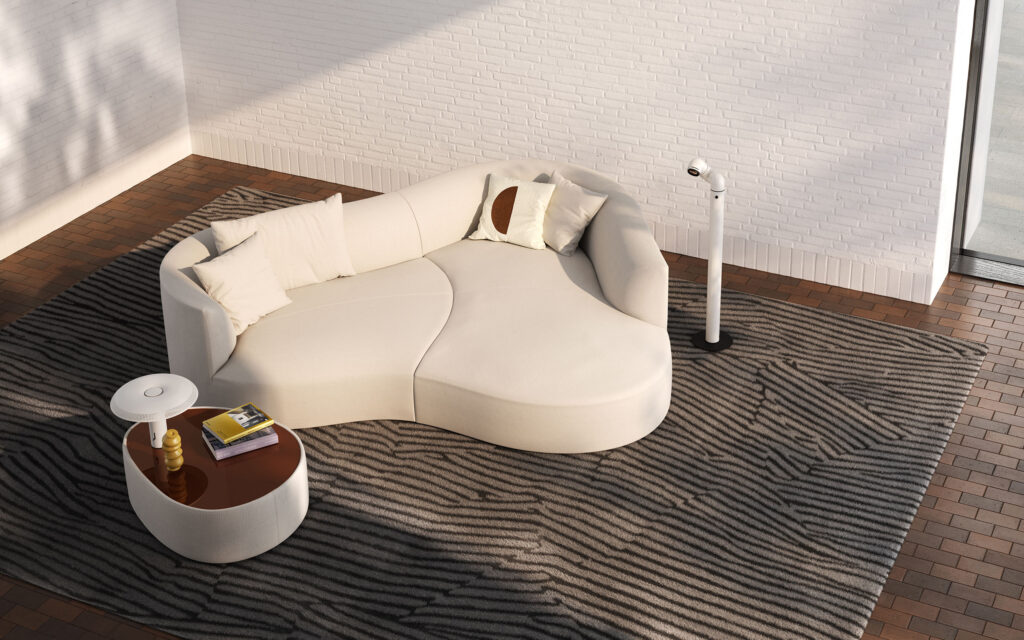 Das Sitzmöbel mit der bogenförmigen Rückenlehne und den organisch anmutenden Nähten gibt es in drei Ausführungen: als Récamiere für eine Person, als Zweisitzer-Sofa und als extragroße Liegewiese, auf der gleich mehrere Personen sich bequem niederlassen können.